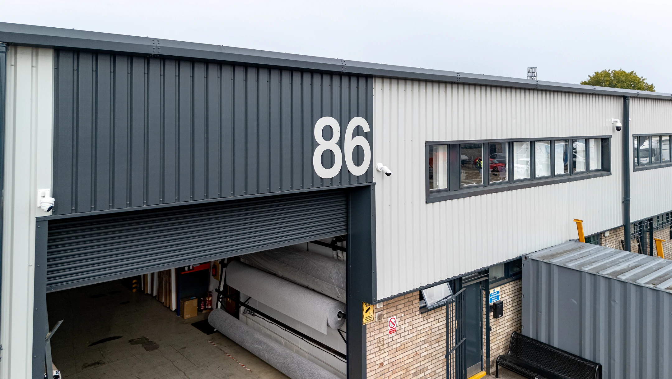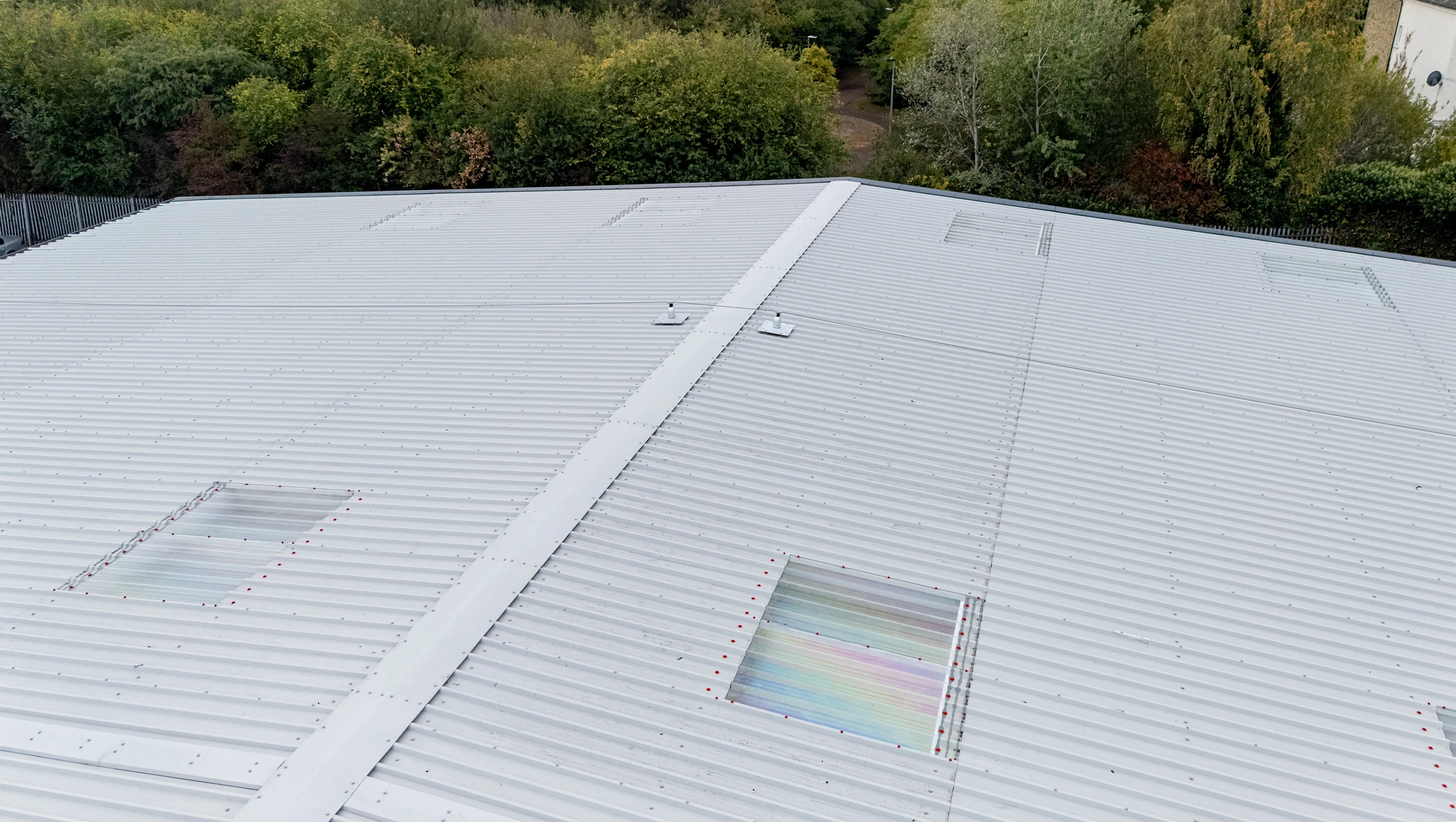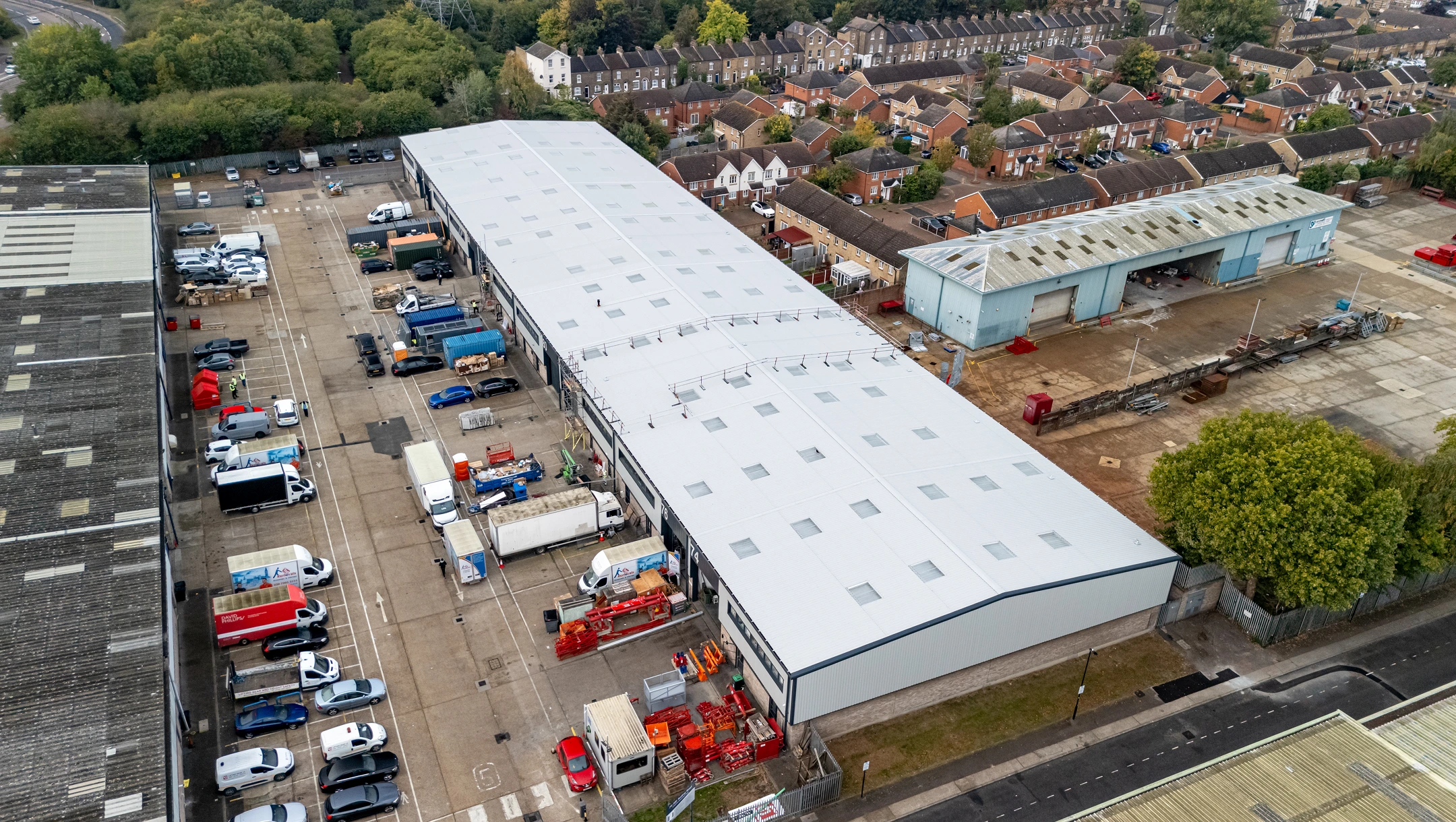 Our comprehensive service package focuses on the complete refurbishment and modernisation of commercial roofing and cladding systems. A comprehensive design and drawings were completed and Architect approved prior to commencing with the works. This job included the clearance of all redundant elements such as flues, vent pipes, and caps. A critical component of the project involved the safe and compliant strip-out and removal of existing asbestos cement sheeted roofing. We then proceeded to supply and install a new, high-specification roof system, featuring a built-up assembly with durable plastisol-coated steel sheeting and the integration of Insulated Triple Skin GRP Brett Martin Rooflights to enhance natural lighting and thermal performance. Concurrently, all existing guttering and downpipes were safely stripped out and replaced with a new Trimline Guttering System on both the front and rear elevations. Finally, the scope encompassed the strip-out and removal of all existing wall cladding, insulation, flashings, trims, and associated fixtures from the front and rear elevations, followed by the design and installation of a new built-up, half-height wall cladding system on both the front and rear elevations, delivering a modernised, energy-efficient, and professional finish.