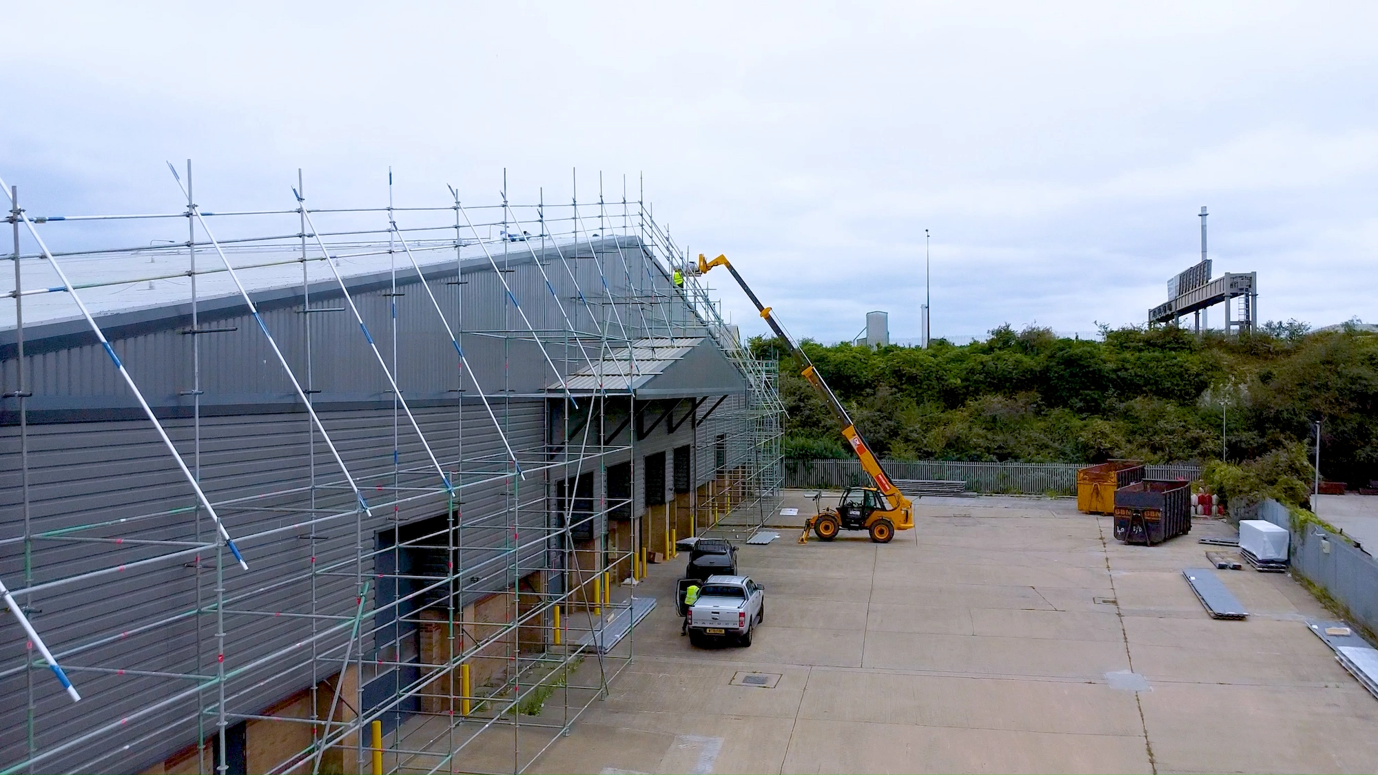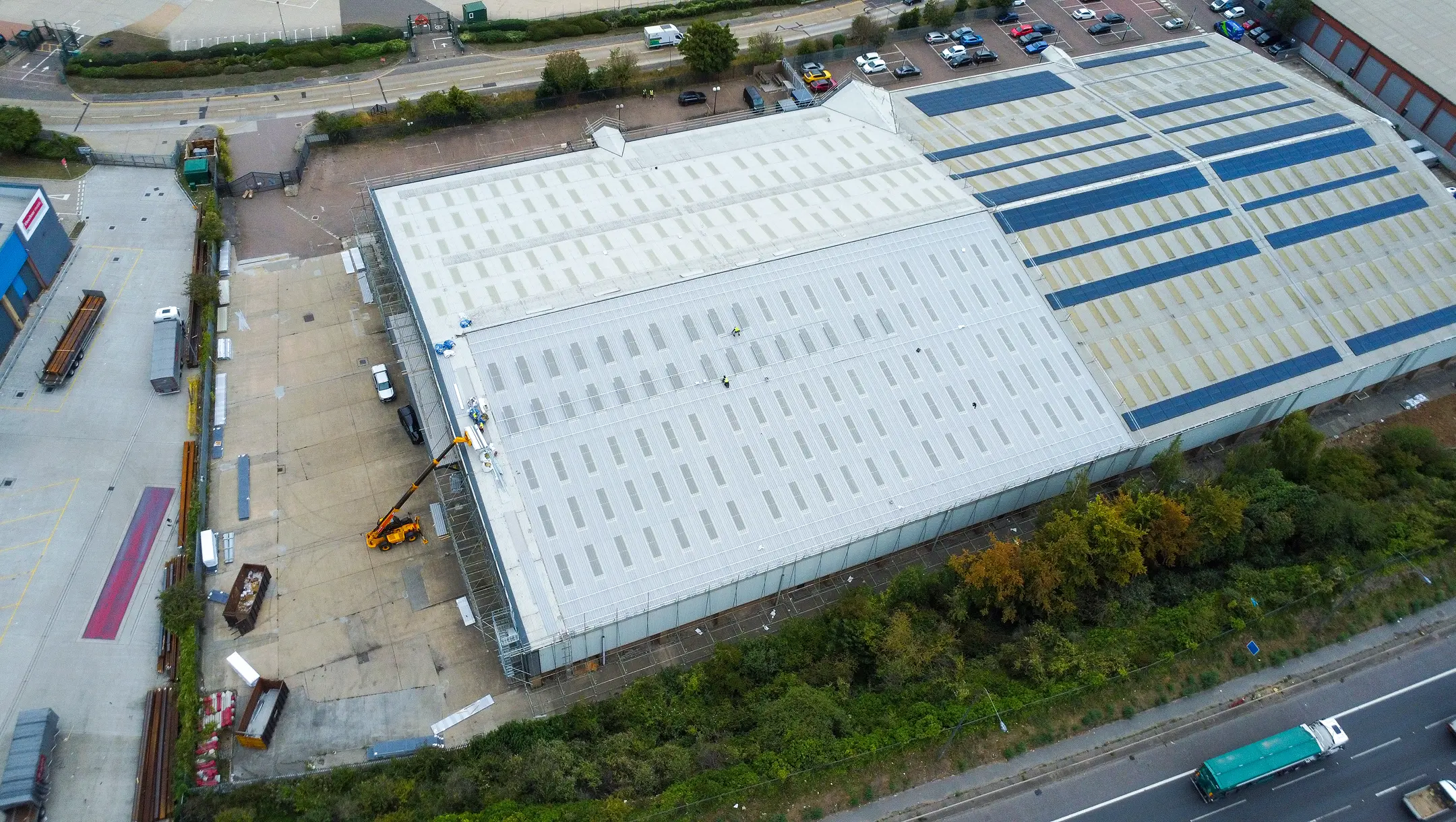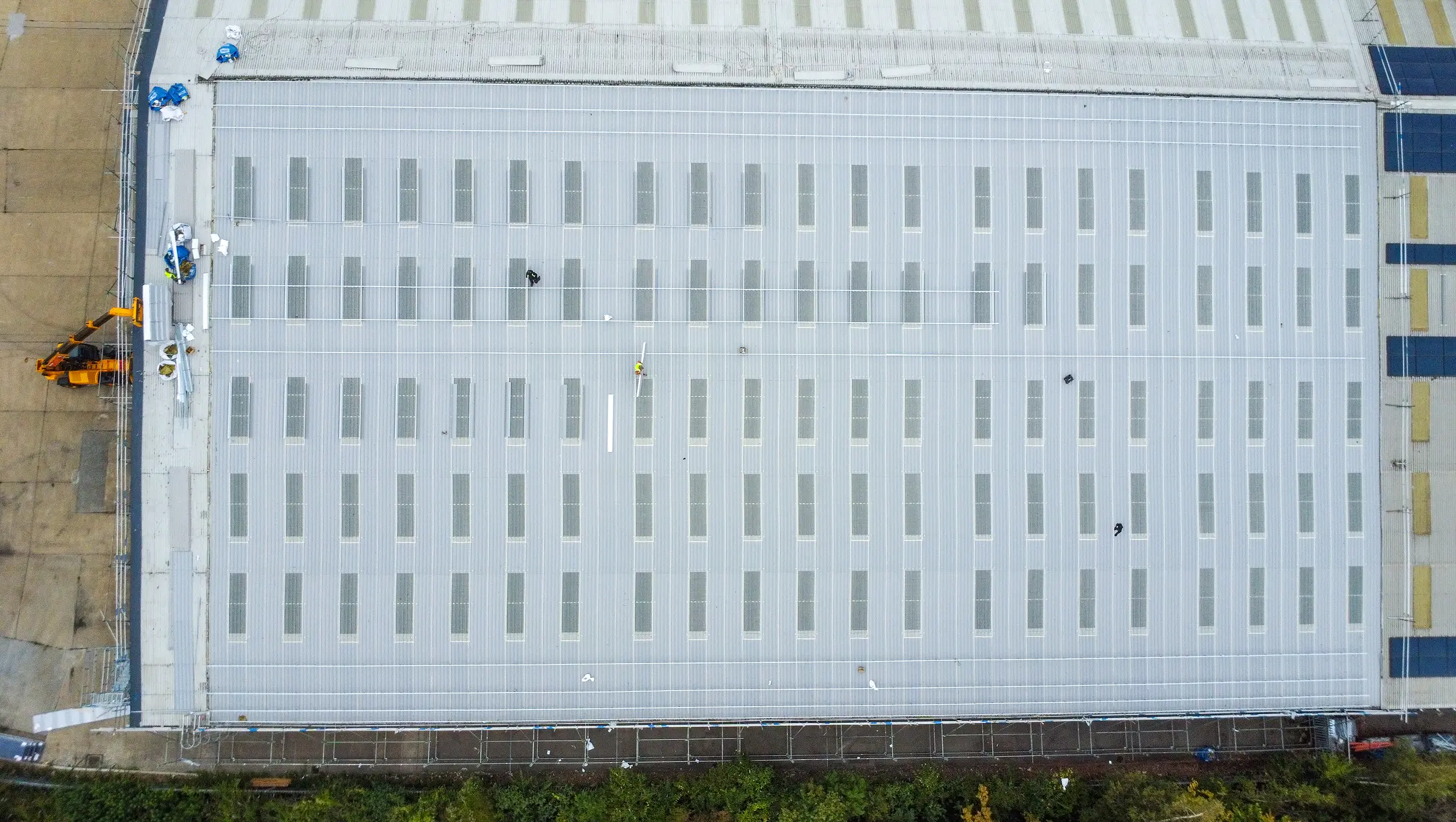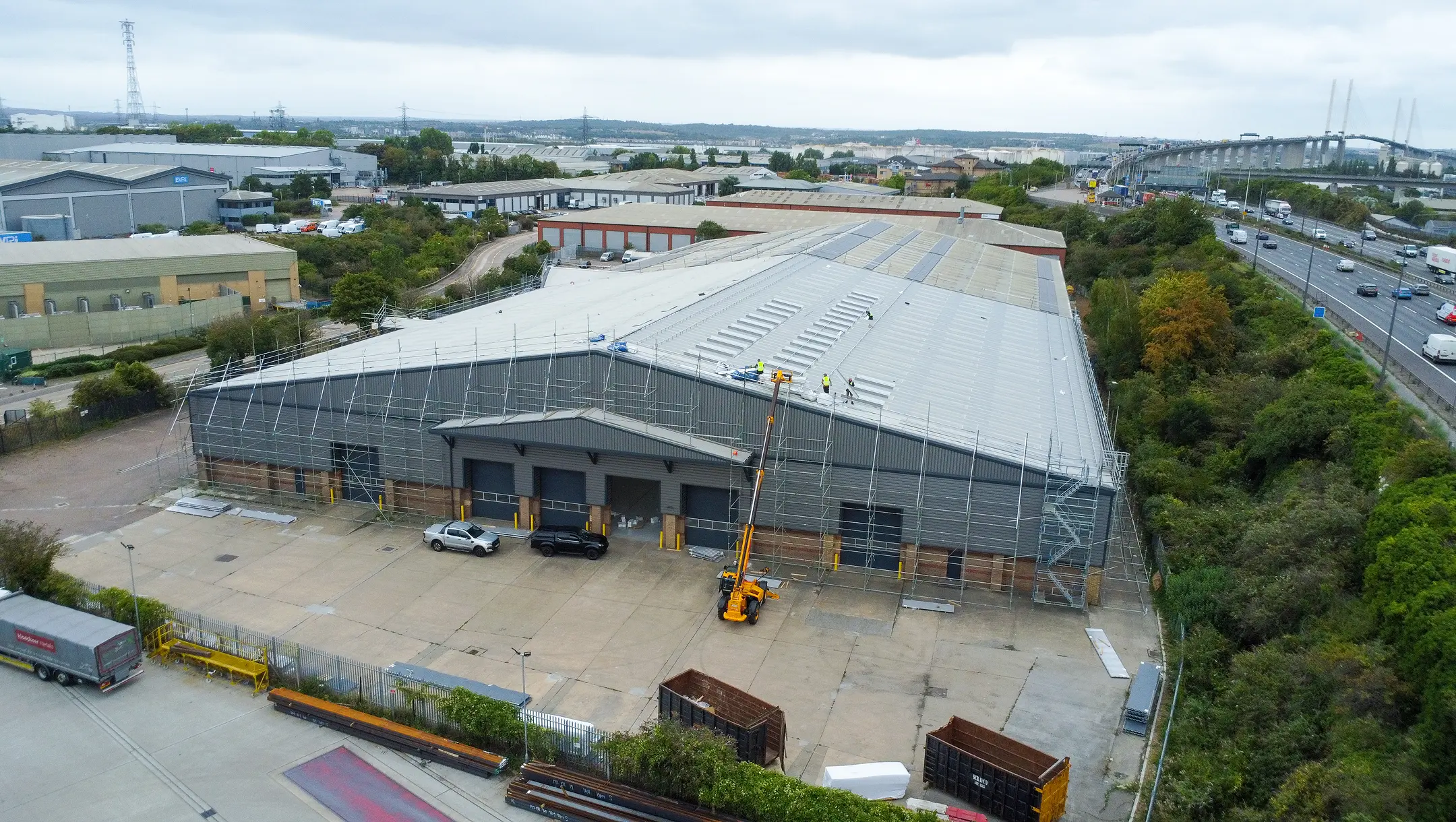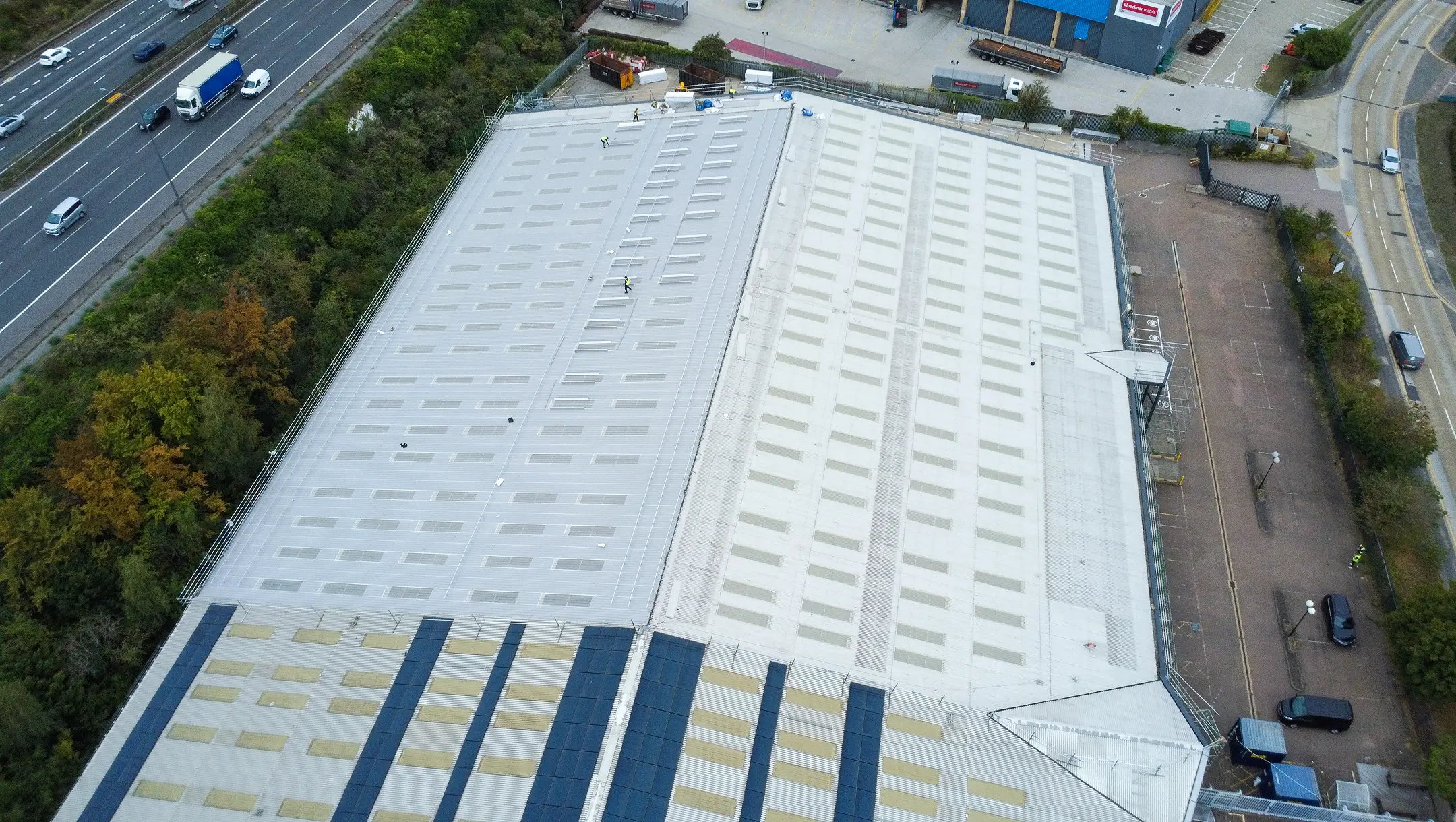 Our comprehensive roofing service ensured safety first by providing full external scaffold access and safety netting across the property to facilitate the safe undertaking of all works. We managed the entire process, starting with the complete removal and disposal of the existing roofing system, including the old metal roofing sheets, insulation, lining panels, flashings and fixings. Following preparation, we expertly designed, supplied, and installed the high-performance Euroclad 32/1000 Elite 2 roofing system. We modernised the structure by replacing old rooflights with new triple skin GRP units, matching the existing configuration, and installed a new Weatherfast gutter to the front elevation and a new trimline gutter system to the rear elevation. An essential safety component, the man safe fall arrest system, was installed toward the end of the programme to facilitate safe access to the roof for future maintenance procedures such a gutter cleaning.